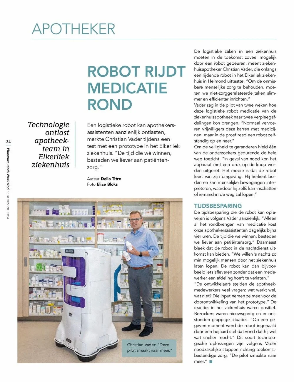 “Alleen al het rondbrengen van medicatie kost onze apothekersassistenten dagelijks bijna vier uren. De tijd die we winnen, besteden we liever aan patiëntenzorg. Deze pilot smaakte naar meer.”